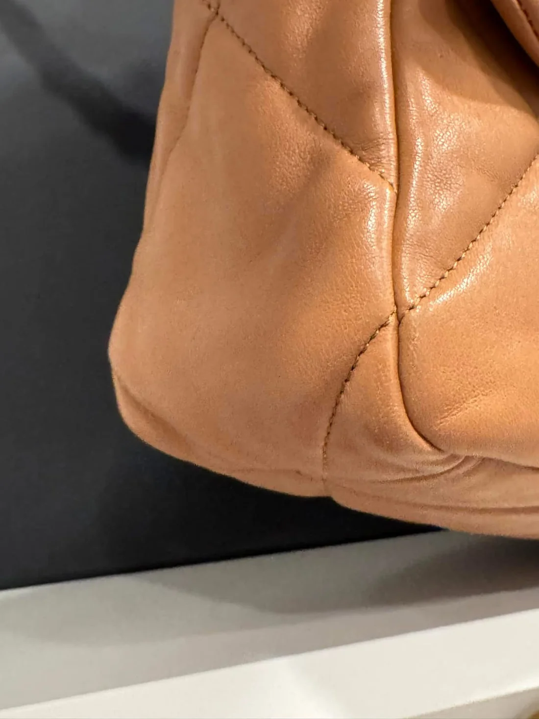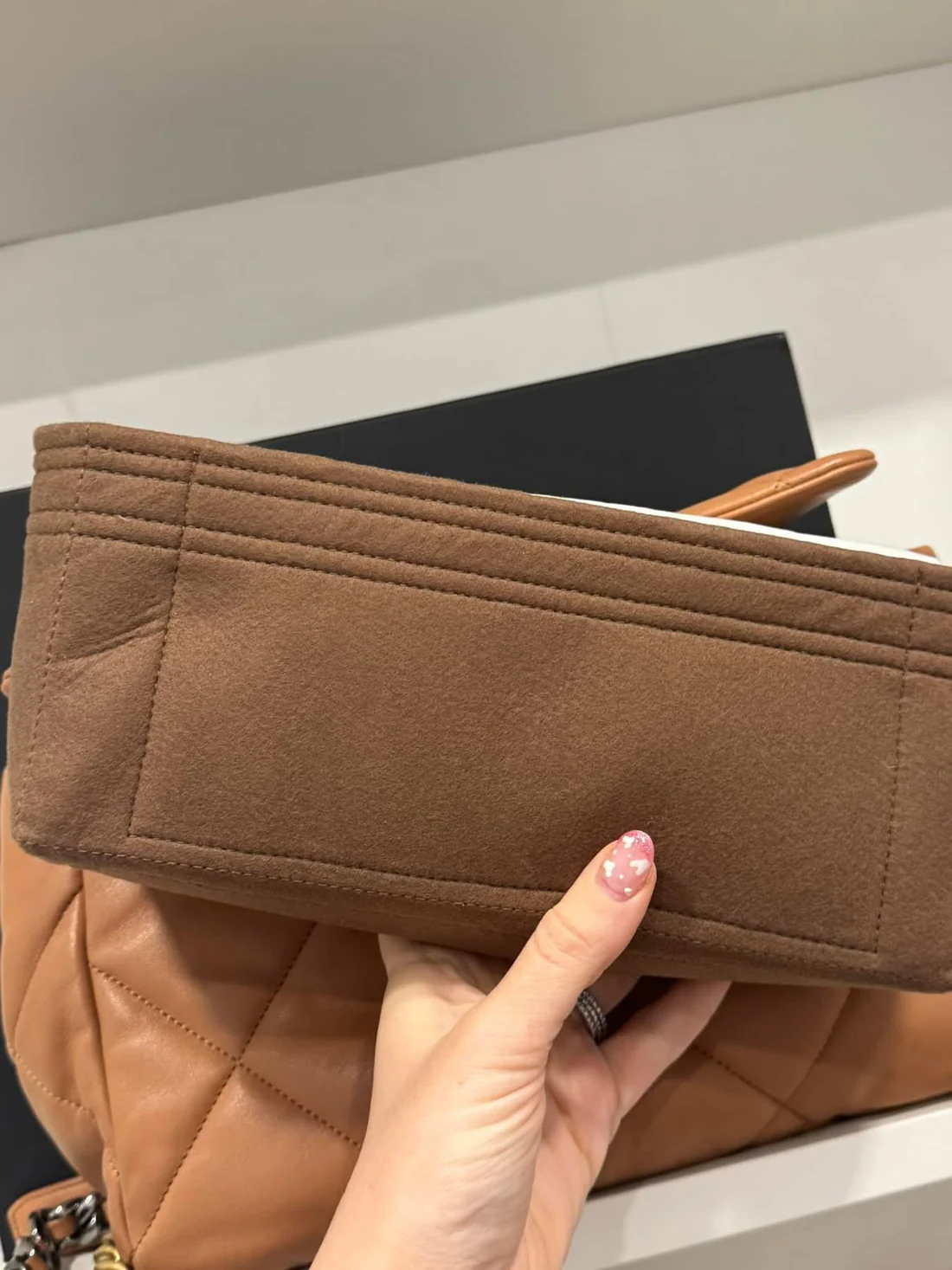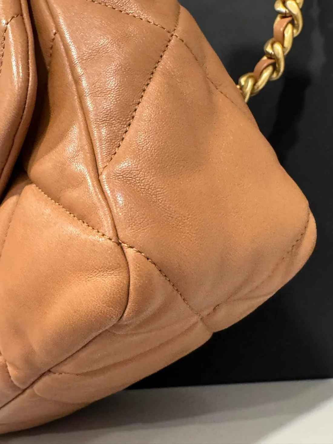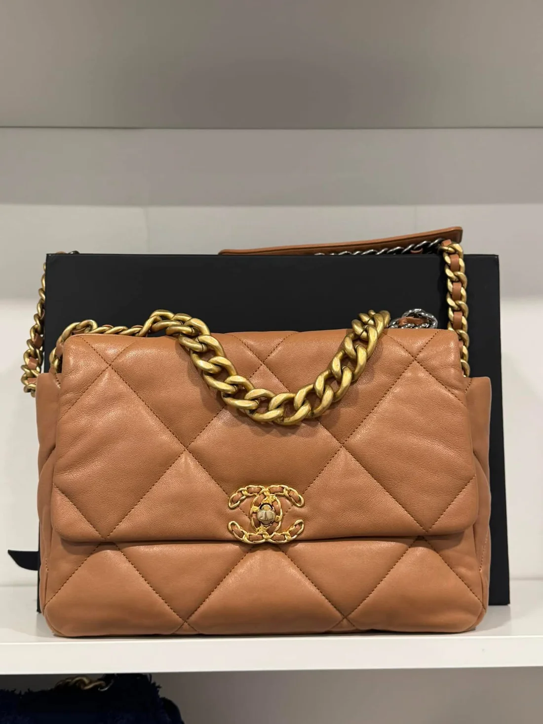 C 19 large Carmel color. Excellent condition with one minor mark on interior as pictured. Full set comes with box dustbag authenticity card and certificate of authenticity. Comes with organizer as well