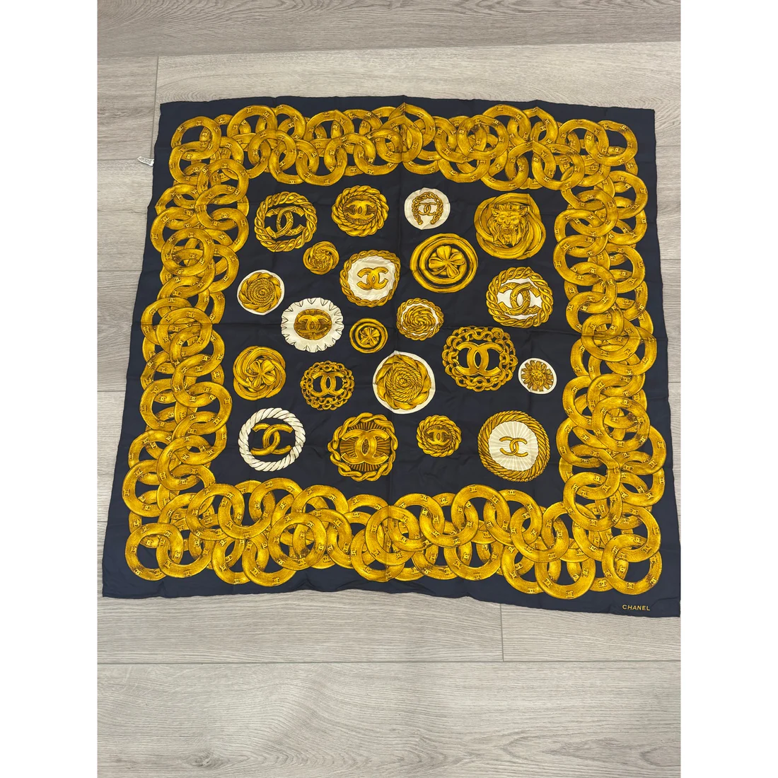 100% silk. Like new 90×90 scarf