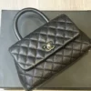 Chanel two way top handle caviar with ruthenium hardware. Preloved in excellent condition. No signs of wear. Comes with strap, inserts, box dustbag and authenticity card.