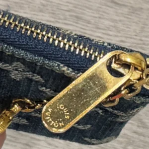 Lv denim key cles. Light scratches on hardware. Clean throughout. Comes with dustbag